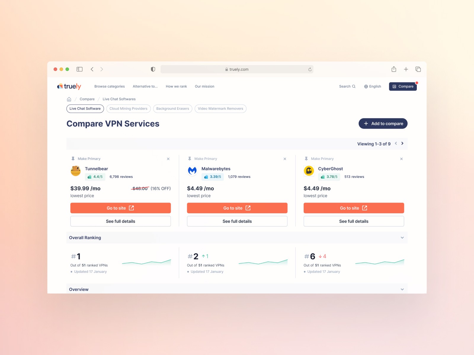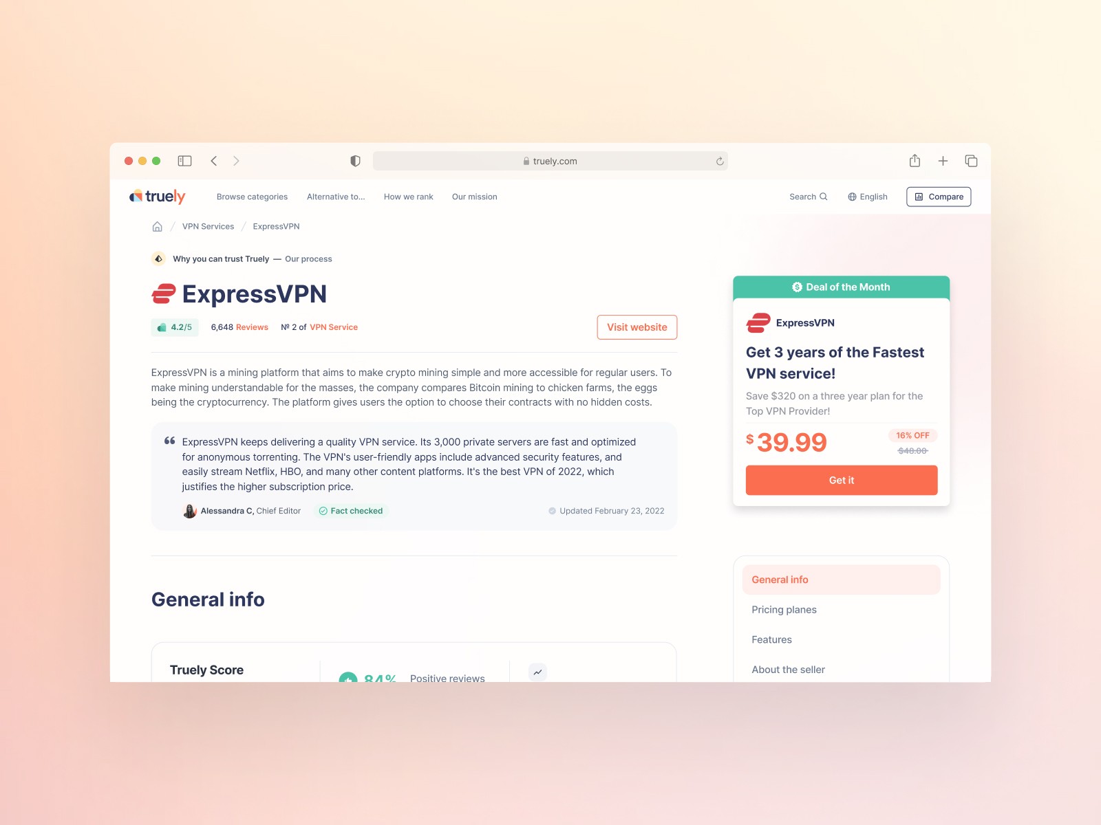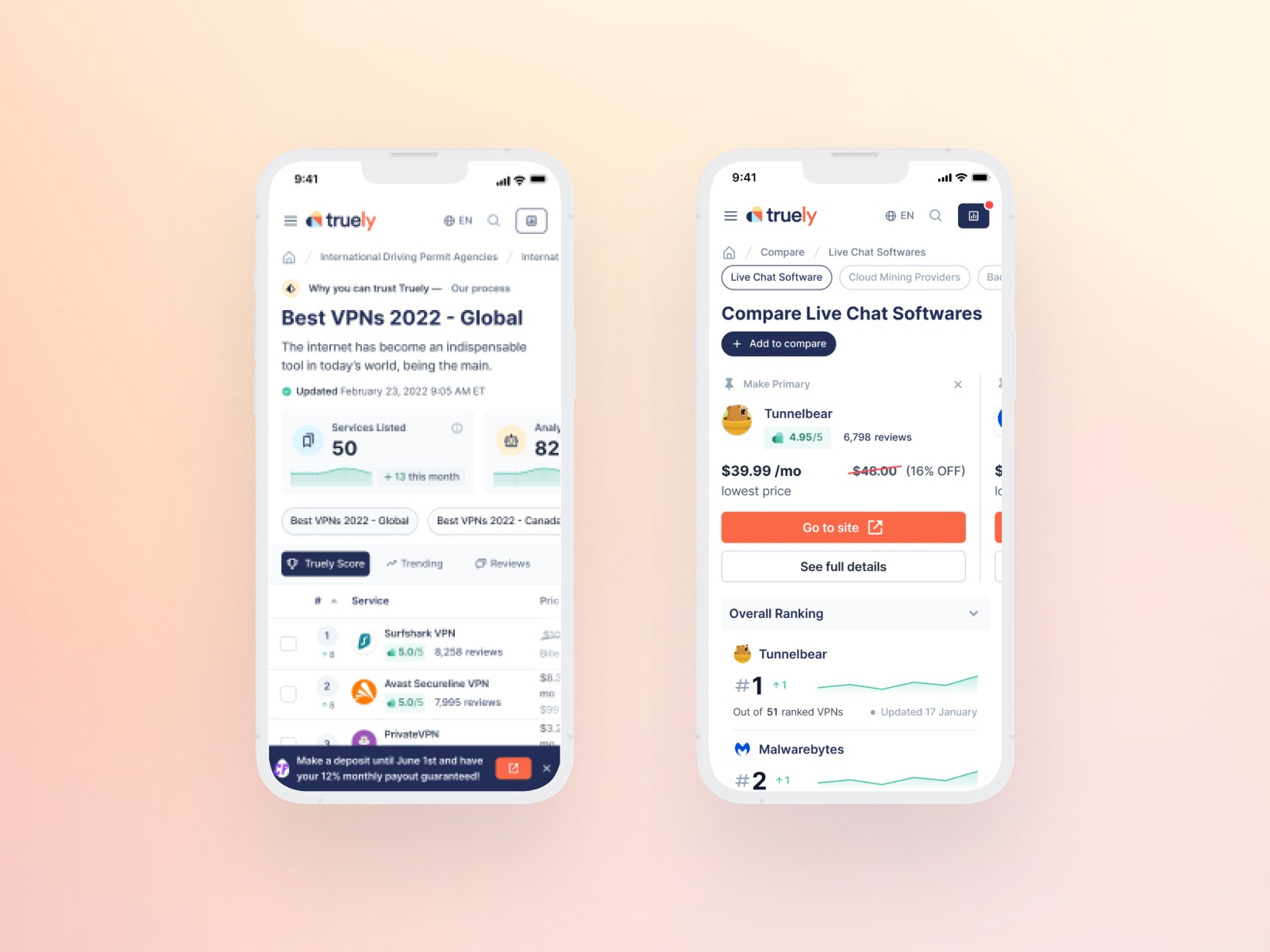 Truely is a compare and review site where people can read and write reviews and compare certain products. The project was groundbreaking and revolutionary, helping users find what they like and waste less time researching the product or service.